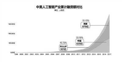 在资金方面,无数据表现,美国有关人工智能的第一笔危险投资呈现在1999年,2012年为暴发期拐点。中国第一笔人工智能危险投资呈现在2005年,2013年进入暴发期。从融资金额来看,现在中国在人工智能的投资额约为635亿元,能占到寰球的33%,仅次于美国的51%。但是,从融资数目来看,2016年一共产生投资案例9124笔、波及7449亿元,而依据公然信息,人工智能的投资案例仅100多起,相较还是“小众”行动。