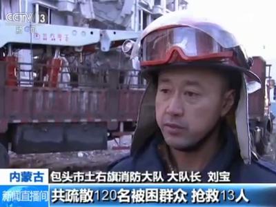 包头市土右旗消防年夜队 年夜队长 刘宝:在此次抢险救济傍边,咱们消防官兵总分散120名被困大众,挽救13人。