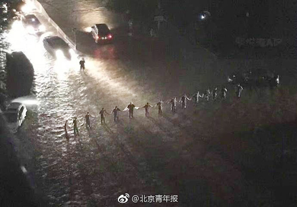 2日下战书开端,房山区长阳镇普降年夜雨,局部途径呈现积水,当晚9时许,有网友在网上宣布照片,称十多名武警兵士手拉手站在积水路口,指引车辆绕行积水路段,照片上,十多人手拉手站在水中,被良多网友称为“最丽人墙”。3日上午,北青报记者离开房山区长阳镇,找到了照片中的任务职员,他们并非网友所称的武警兵士,而是房山区水务局聘任的某安保公司的抢险队员,北青报记者懂得到,他们2日晚接到抢险义务后便赶到了现场,从晚上8点开端,始终站到9点积水匆匆回落当前,积水最深时,水已经超越了他们的腰部。现在,该安保队队员还在持续加入为积水的地下车库排水等任务。