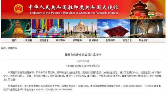 中国驻印度使馆提示在印、行将来印中国国民,亲密存眷外地保险局势,进步自我维护认识,增强保险防备,增加不用要的外出,出行留神人身跟财富保险,提前告诉家人、共事、友人出行情形,坚持通信疏通,携带团体身份证实,谨言慎行,严厉遵照印执法法例,尊敬外地宗教习气微风俗,共同外地法律职员检讨。