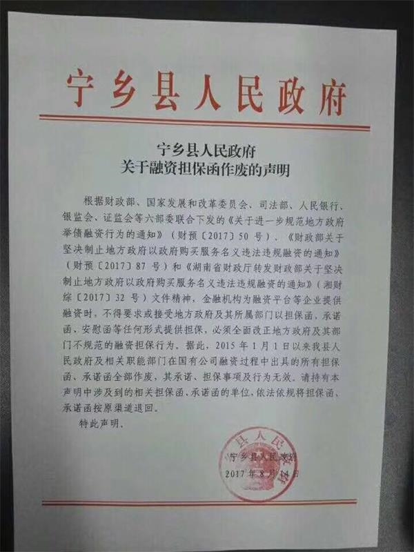 红网时辰长沙8月24日新闻,日前,宁乡县有关部分为贯彻落实国度六部委有关文件精力,以宁乡县国民当局名义下发《对于融资包管函取消的申明》,惹起了社会存眷。对此,宁乡县国民当局高度器重,敏捷召开专题集会研讨,以为该申明存在不当之处,既不正确懂得跟掌握中心政策请求,更不阐明县国民当局同时采用的系列配套落实办法,重大误导了社会言论。集会决议即时收回此函,向社会各界表白真挚歉意,并表现,宁乡县国民当局将片面深入懂得中心精力,严密联合宁乡现实,严厉依法行政,依法依规妥当处置融资包管成绩,出力打造诚信当局、法治当局,尽力防备金融危险。