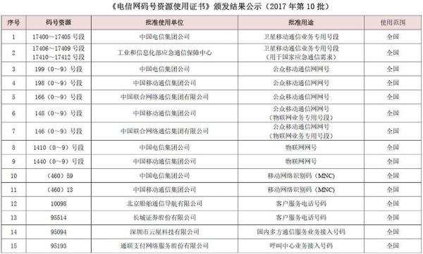2017年第10批《电信网码号资本应用证书》发表成果公示(起源:工信部网站)