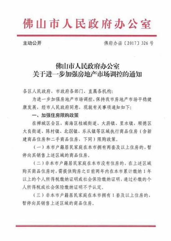 佛山市住建治理局称,自2016年10月以来,佛山持续三次宣布增进房地产市场安稳安康开展的调控办法。以后佛山市房地产市场开展总体安稳安康,佛山有针对性地出台调控二手房市场的┞服策,表现了“因城施策,分类调控”的准则。