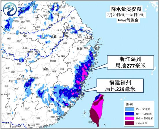 受双台风独特影响,29日凌晨至今,浙江东部、福建西南部、江西西部等地累计降雨量超越100毫米,浙江温州、福建宁德跟福州等地达200~277毫米;台湾屏东、高雄、沂攀兰等地累计雨量超越500毫米。